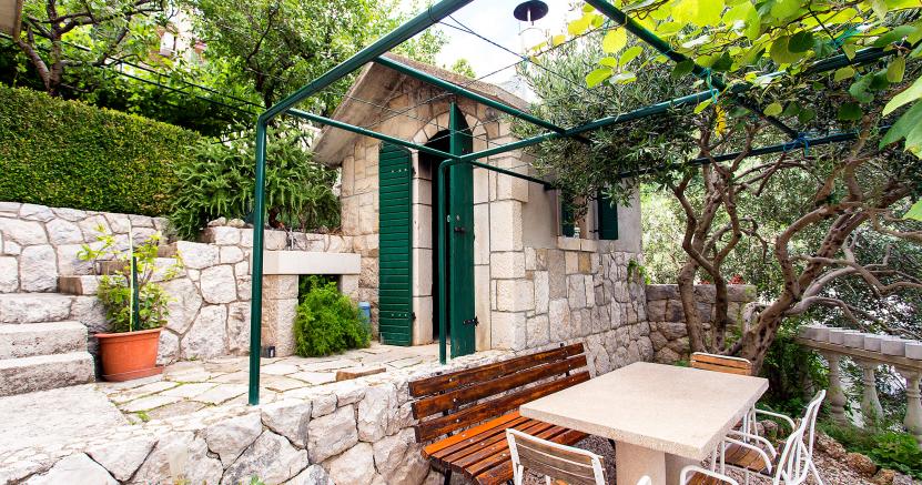 Unutar vile gosti mogu uživati u verandi i trima kaskadnim vrtnim terasama, s primamljivom kamenom kućicom opremljenom roštiljem i pekom, željeznim zvonom koje se tradicionalno koristilo za pečenje mesa i ribe. Poželite li se okušati u pripremanju svog ulova dana, peka vam je uvijek na raspolaganju. U našem podrumu čuvaju se domaće rakije i vina, proizvedena od pomno biranih domaćih sorti grožđa, tradicija koju obitelj Bartulović njeguje generacijama. Sa zadovoljstvom izražavamo naše gostoprimstvo nudeći ove užitke, nadajući se da će u njima uživati jednako kao što su uživali naši prethodni gosti.